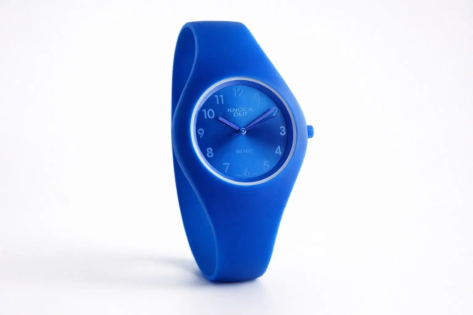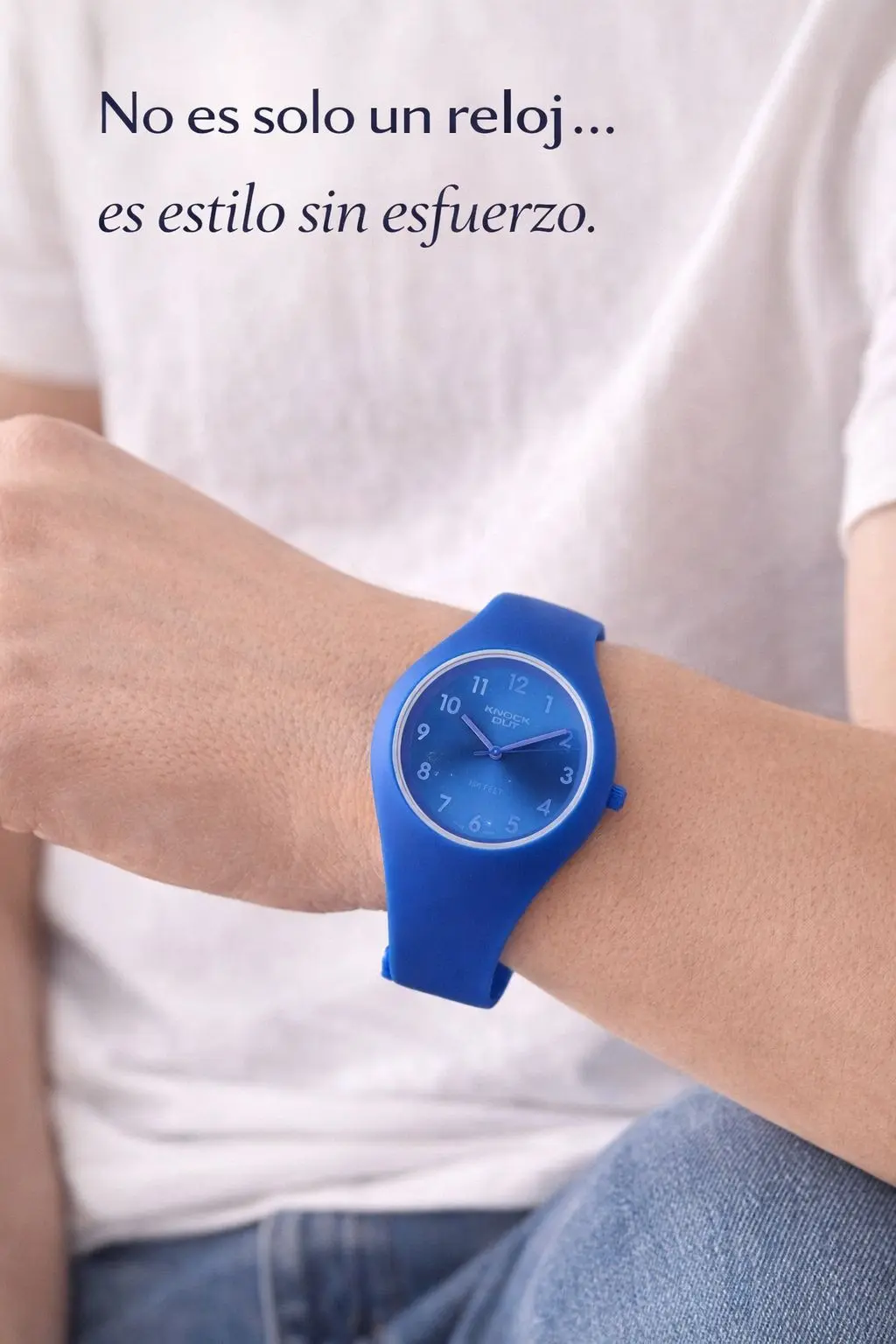 El Reloj Knock Out en tono azul destaca por su diseño minimalista y moderno, ideal para quienes buscan un accesorio versátil, cómodo y con personalidad.
