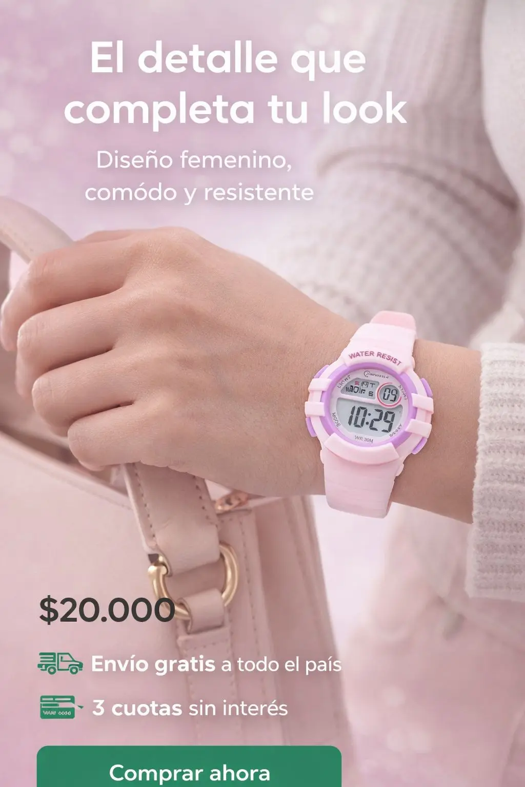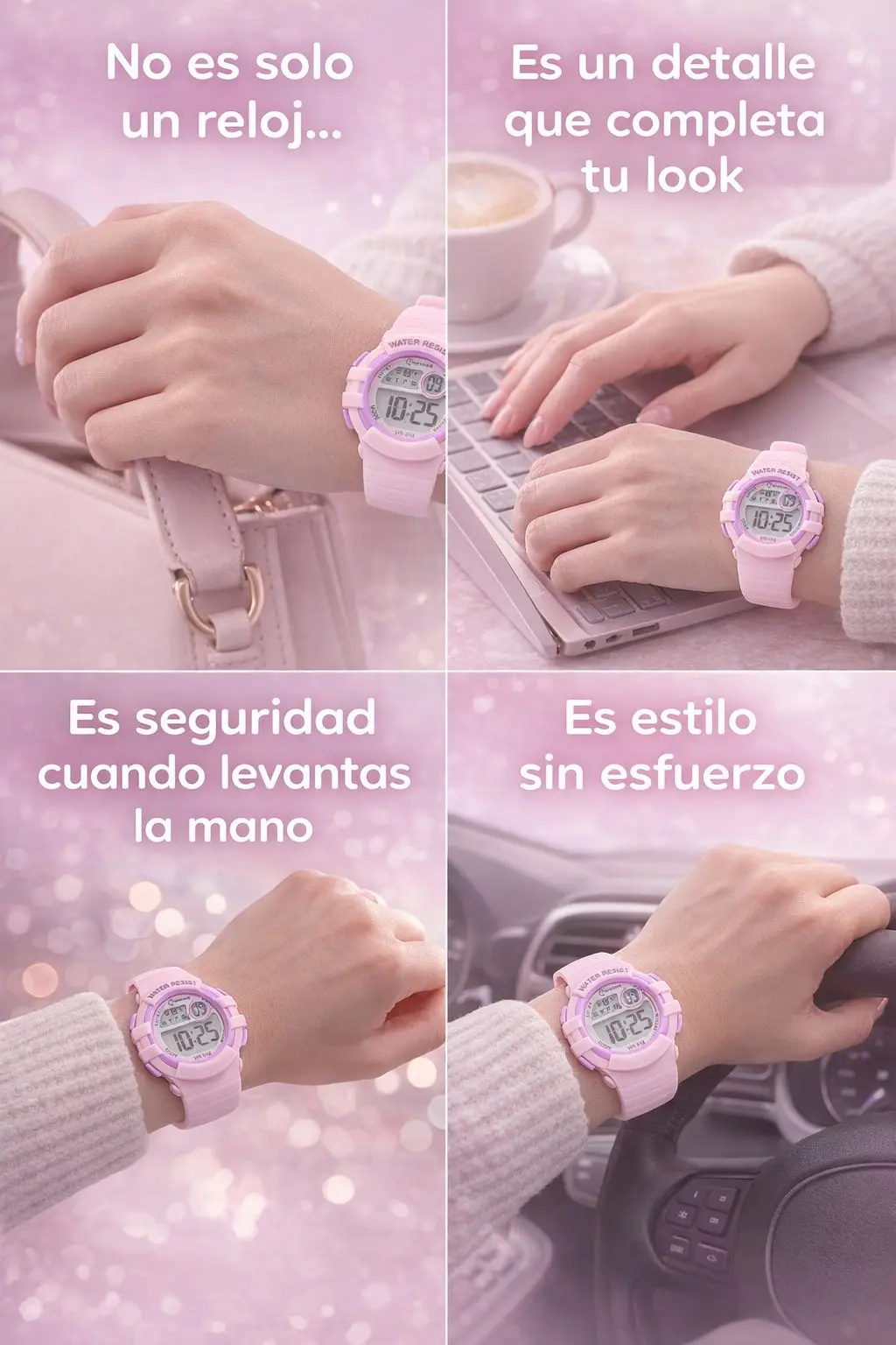 El Reloj Mingrui combina un diseño delicado y moderno con la practicidad que necesitás en tu día a día. Su estilo en tonos suaves lo hace perfecto para cualquier ocasión: desde una salida, hasta tu rutina diaria.