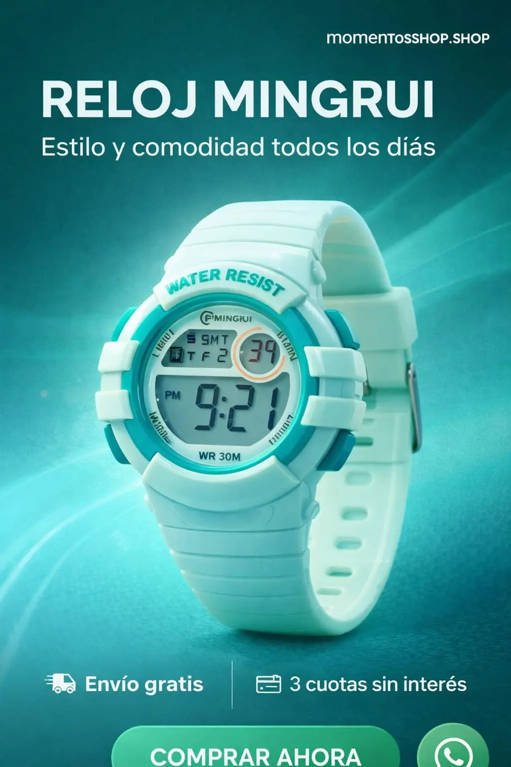 El Reloj Mingrui combina diseño deportivo, comodidad y practicidad para que puedas usarlo todos los días: en el trabajo, saliendo, entrenando o simplemente disfrutando tu día.