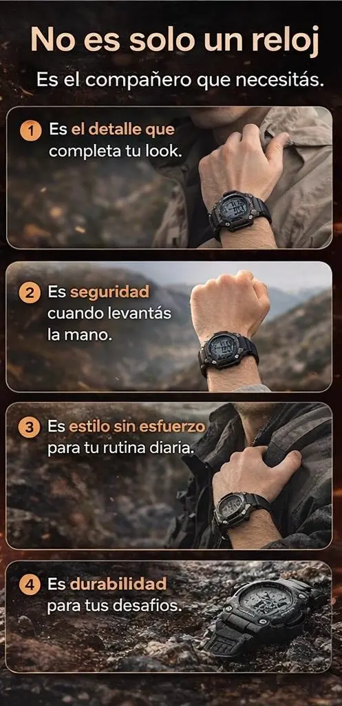 Diseñado con una estética moderna y deportiva, este reloj digital se adapta a cualquier momento del día: trabajo, estudio, deporte o salidas. Su diseño robusto y cómodo lo convierte en un compañero ideal para tu rutina diaria.